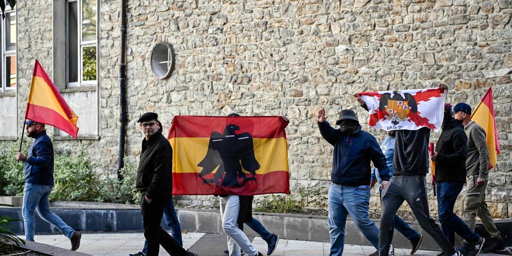 Bajo el lema 'La unidad de España ni se vota ni se negocia', este pasado domingo la Falange había convocado una concentración en la capital alavesa. Paralelamente, distintos colectivos celebraron otra contramanifestación en la que protestaban por la presencia de este partido en Vitoria.