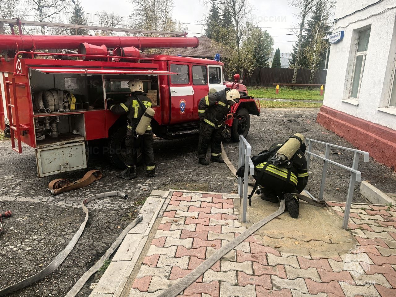 Тренировка состоялась в Центре образования №41 в поселке Хомяково. Согласно легенде, из-за короткого замыкания электропроводки загорелся первый этаж школы. После срабатывания автоматической пожарной сигнализации из здания вывели 198 человек, огнеборцы выполнили разведку помещений, «спасли» двух человек и быстро потушили условный огонь.