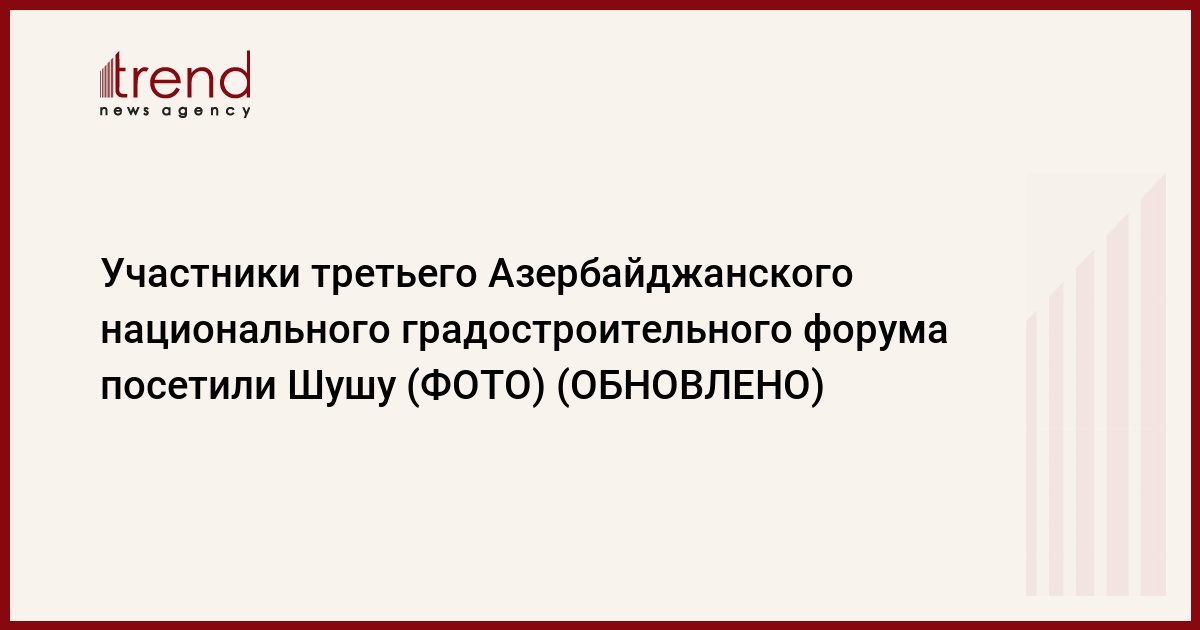 ШУША /Trend/ - Участники Третьего Азербайджанского национального градостроительного форума на тему «К климатоустойчивым и здоровым городам: региональные партнерства и инновационные решения» ознакомились с городом Шуша, являющимся символом истории и культуры Азербайджана.