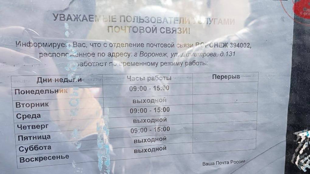 «Вести Воронеж» уточняют причины, по которым парализована работа отделения, в пресс-службе «Почты России».