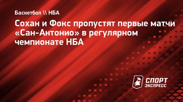 Нападающий «Сан-Антонио» Джереми Сохан и его партнер по команде защитник Де'Аарон Фокс пропустят первые матчи регулярного чемпионата НБА из-за травм, сообщили в клубной пресс-службе.