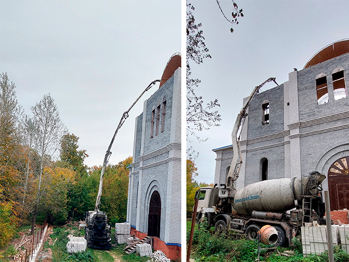 В Пучеже продолжается строительство храма Успения Пресвятой Богородицы. Его возводят взамен прежней церкви, которая была затоплена при строительстве Горьковского водохранилища. Напомним, капсула в основание храма была заложена еще в 2013-м. Два года назад появился приход, и церковь стала действующей. В текущем году попечительский Совет поставил главной задачей обустройство сводов. Готовились к этой работе не один год. К заливке приступили в августе. На днях - закончили. Каждая арка вмещает более 30 тонн бетонной смеси. В следующем году планируют снять опалубку и продолжить кладку стен.