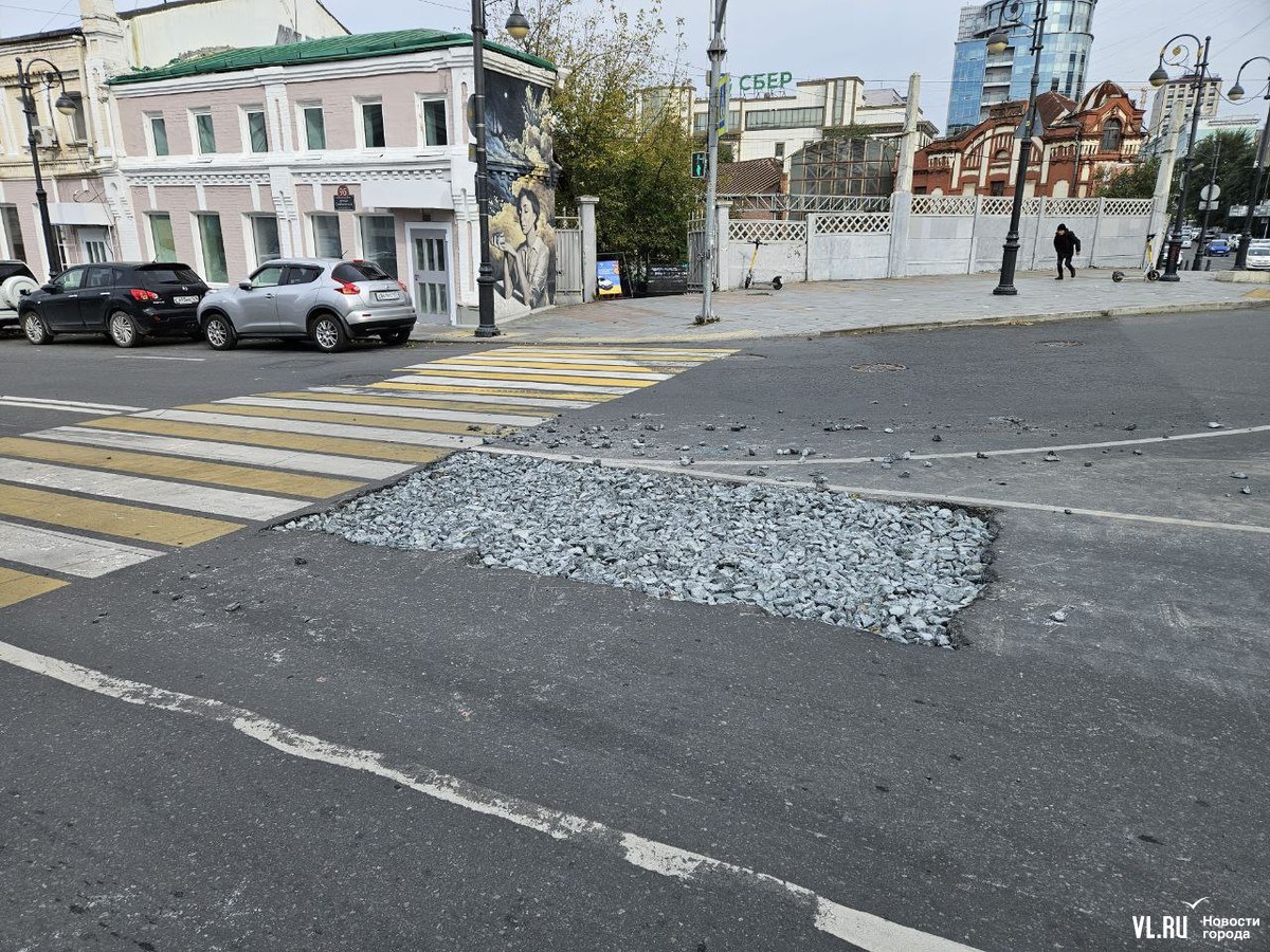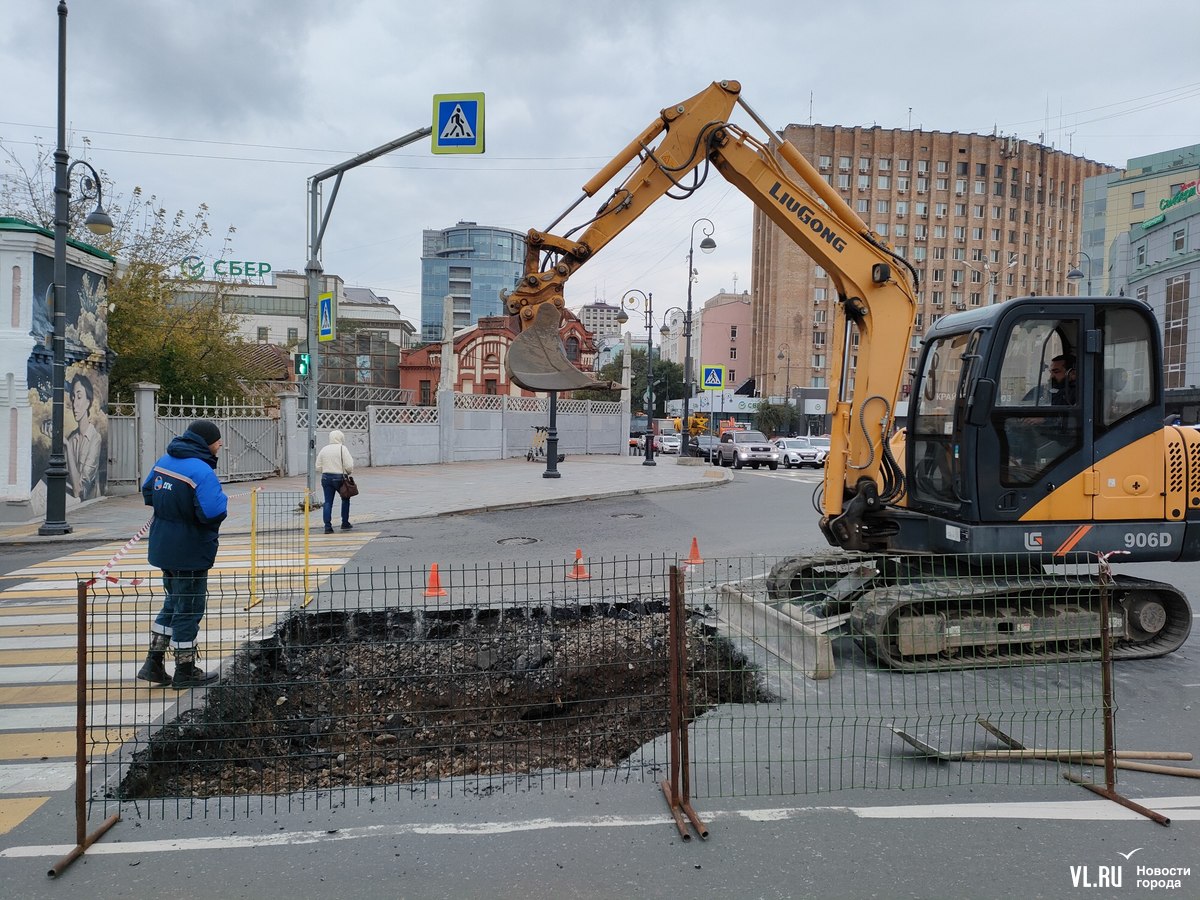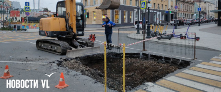 В субботу, 18 октября, водители неприятно удивились глубокой яме на проезжей части на Семёновской. Она заняла целую левую полосу движения от стадиона «Динамо» в сторону Алеутской и Океанского проспекта. На участке работает экскаватор, КамАЗ и несколько специалистов теплосетей. В ДГК объяснили, что здесь обнаружился свищ трубы горячего водоснабжения. А в целом спецтехнику видят на этом перекрёстке уже в четвёртый раз за последние несколько месяцев.
