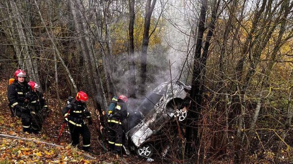 По предварительным данным, водитель Volkswagen не справился с управлением, съехал в правый по ходу движения кювет, где машина наехала на придорожные деревья и загорелась.