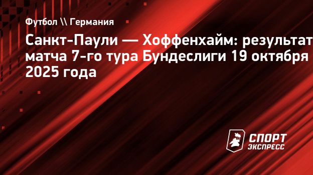 «Хоффенхайм» поднялся на восьмое место в турнирной таблице чемпионата Германии-2025/26 с 10 очками в 8 матчах. «Санкт-Паули» идет на 14-й строчке с 7 очками.