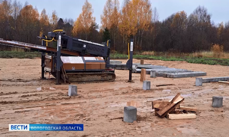 Сейчас рабочие забивают железобетонные сваи фундамента.