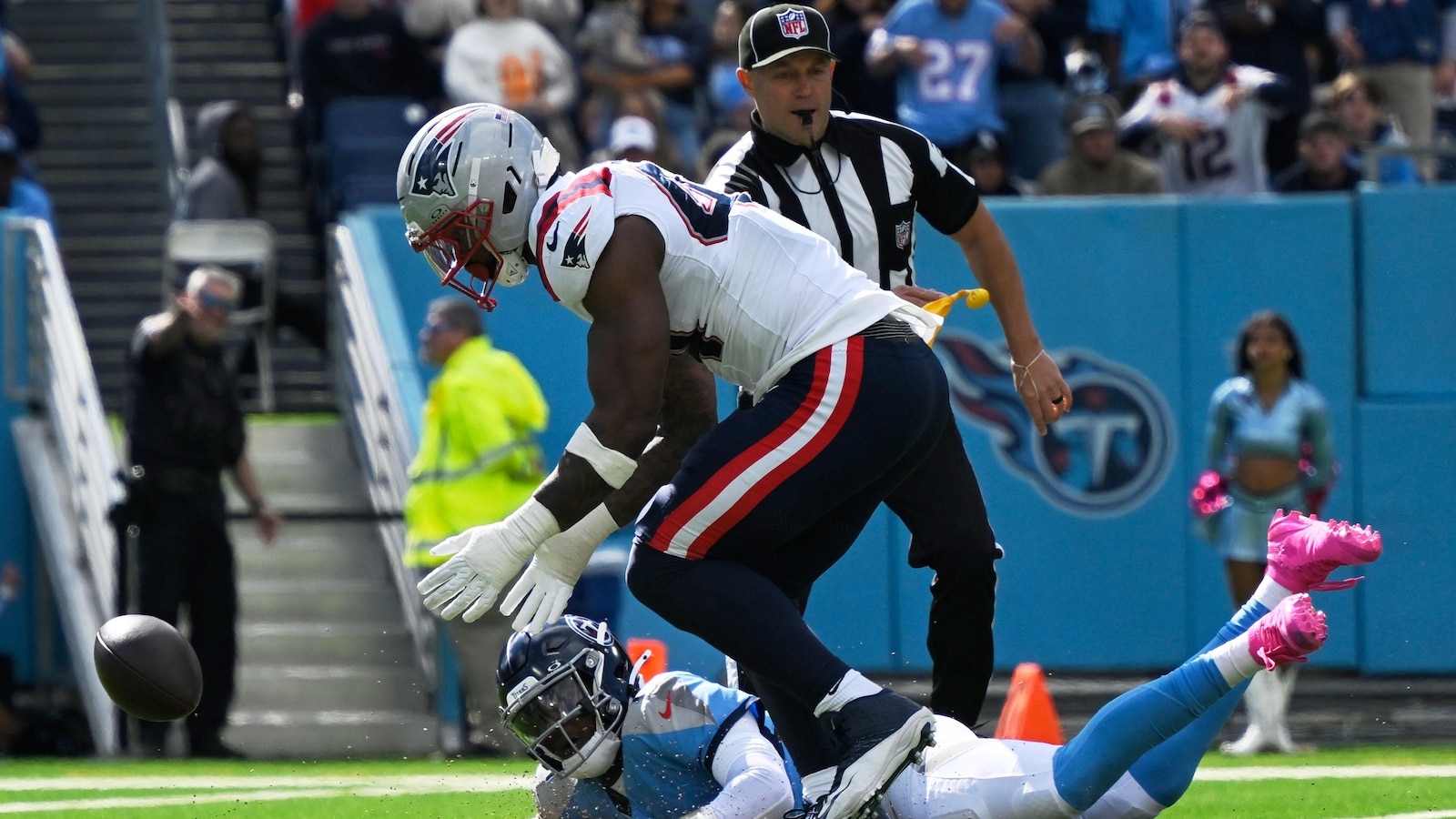 Maye gave the Patriots a 17-13 lead at halftime, tossing a 39-yarder to Kayshon Boutte for his second TD with 49 seconds left. He found Austin Hooper for a 3-yard TD earlier in the second quarter.