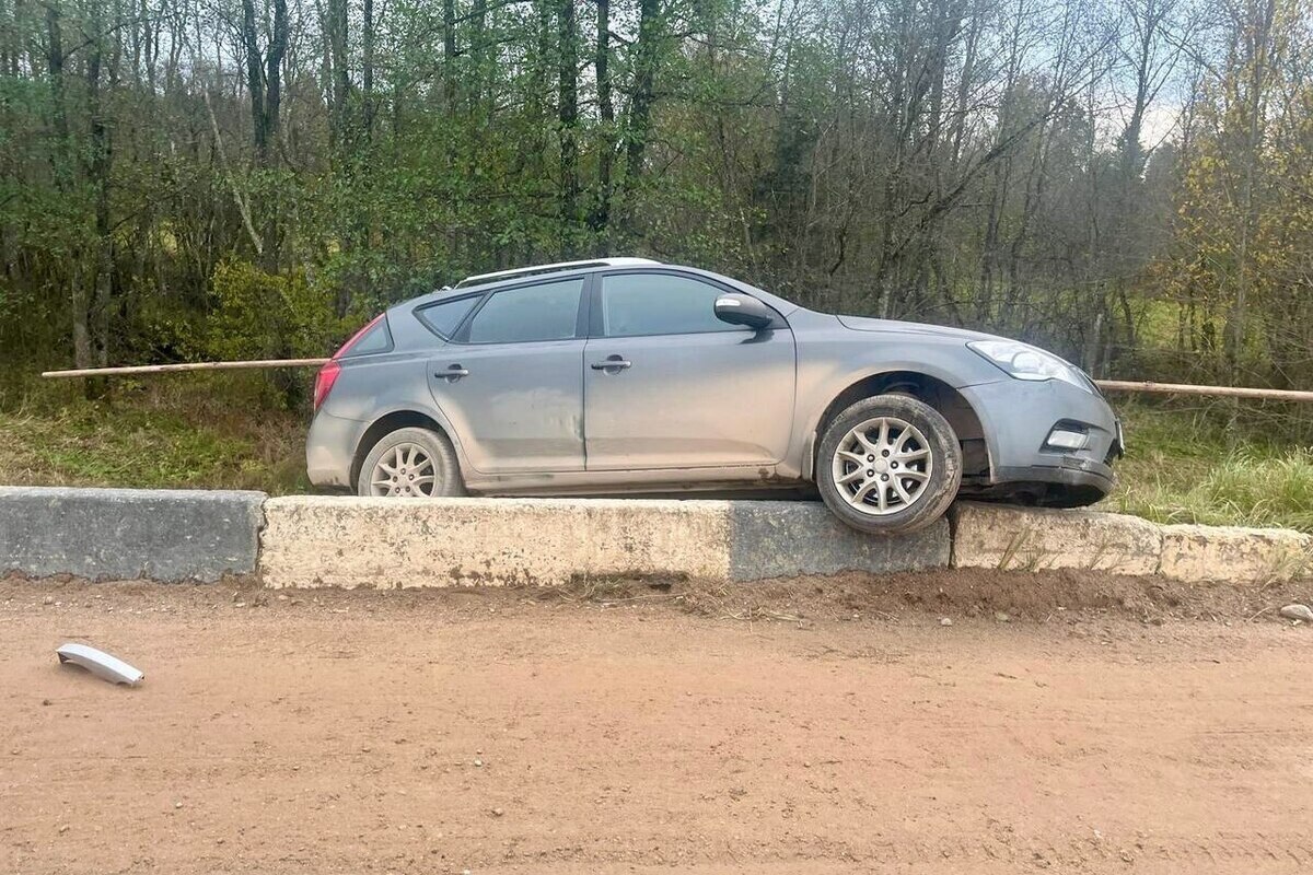 Водитель выехал на встречную полосу, потом наехал на левое ограждение автомоста через реку Великую.