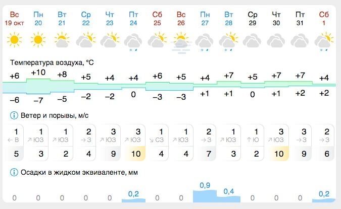 Если смотреть на прогноз до конца октября, то в последнюю неделю месяца нас ждет переменчивая погода — от +4 до +7, иногда будет пасмурно, иногда будет идти снег с дождем и дуть сильный ветер.