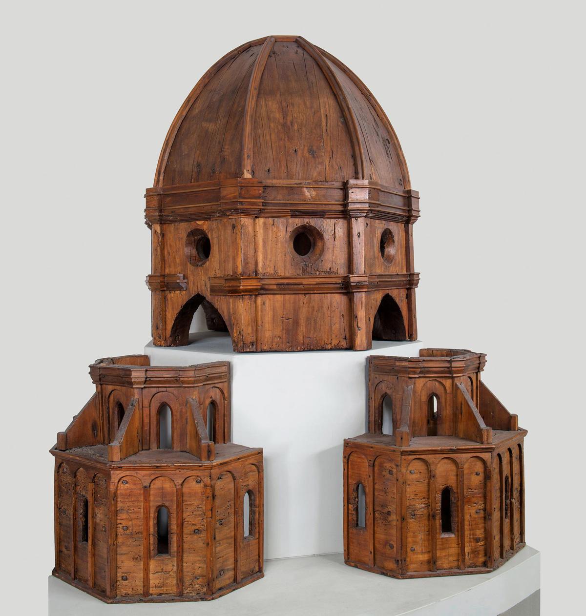 Архитектор разработал машины, позволявшие поднимать тонны материала на стометровую высоту, и подвесные платформы, на которых трудились строители, вместо лесов. Возможно, эта деревянная модель высотой в метр была сделана самим Брунеллески при подготовке к сооружению купола.