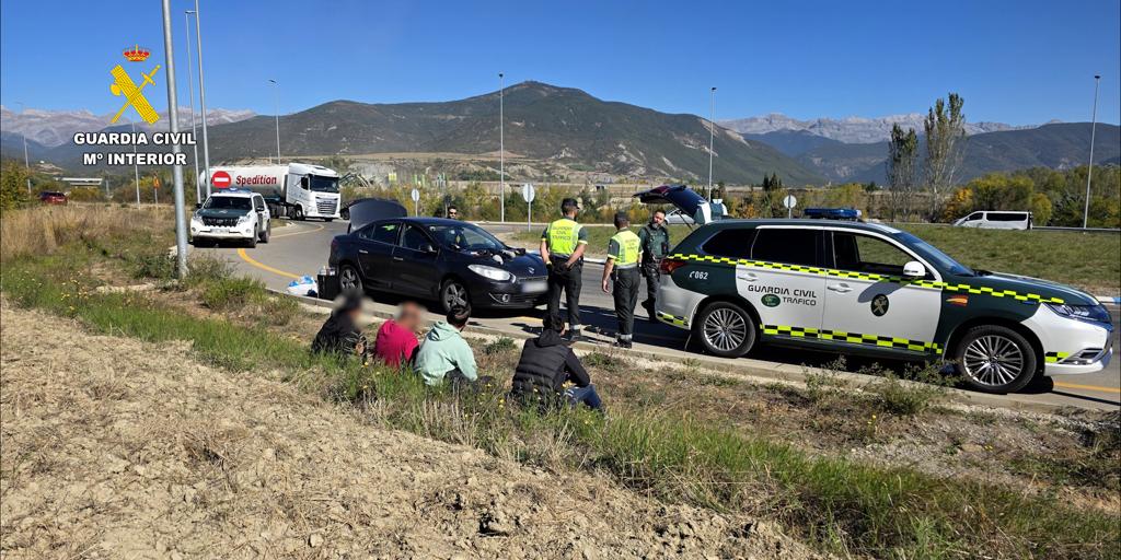 Tras realizar diferentes comprobaciones, los investigadores averiguaron los datos del vehículo que había empleado el grupo para huir. Así, lo detectaron días después en un control policial en el término municipal de Sabiñánigo, también en Huesca. En él, los agentes de la Guardia Civil descubrieron que viajaban cuatro personas.