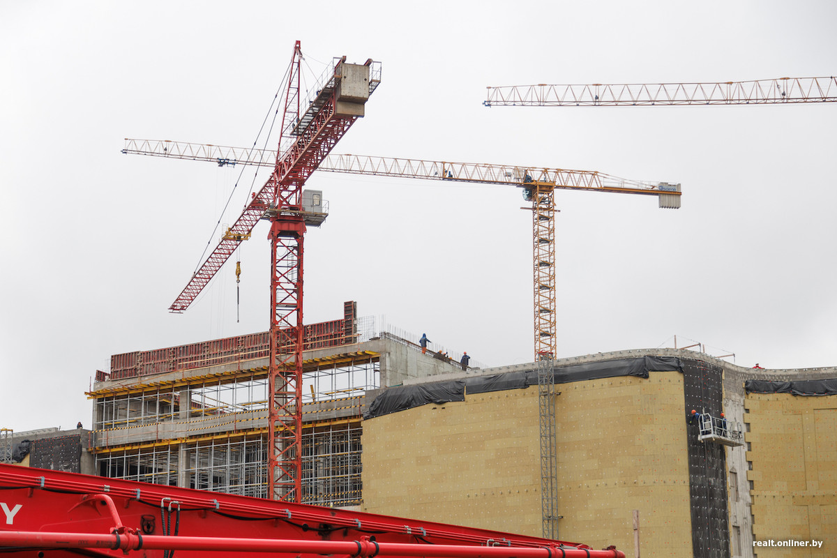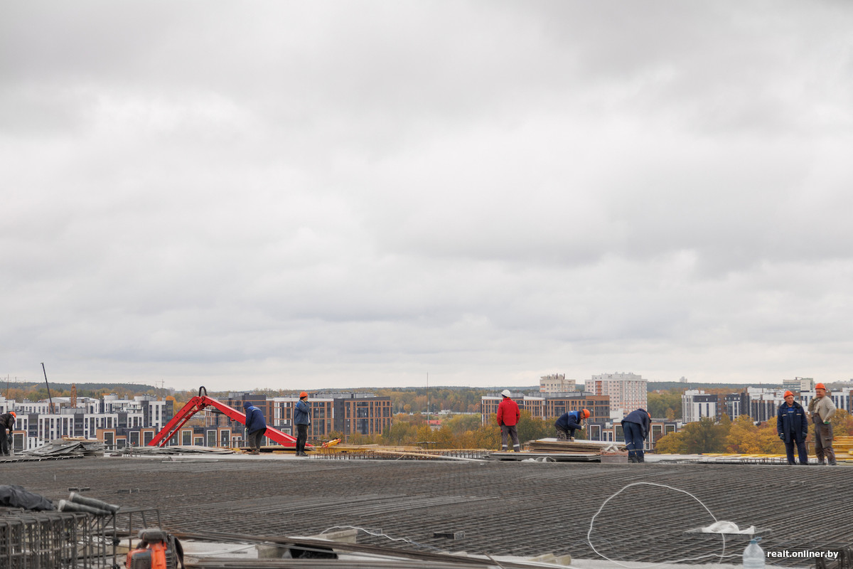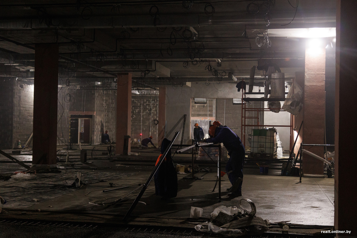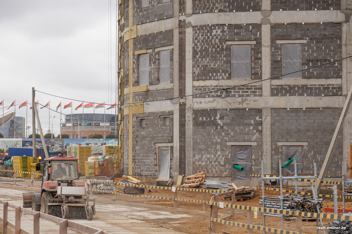 — Работы внутри также активно продвигаются: штукатурим стены, заливаем стяжки, прокладываем инженерные коммуникации. К остеклению приступим в ноябре: здесь предусмотрена витражная система, — рассказывает о не «декоративных» моментах Виктор Еремеев из СУ-7. — Практически все материалы, с которыми работаем, — белорусские. А вот с электроникой и экранами (в музее будет много интерактива) безвозмездно помогут китайские партнеры.