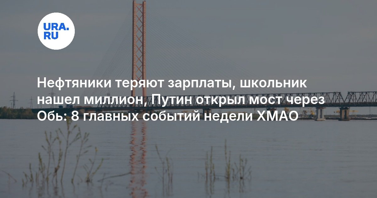 На минувшей неделе аналитики установили, что в округе зарплаты нефтяников резко снизились в сравнении с июнем текущего года. В это время в Нижневартовске 9-летний школьник нашел на улице стопку купюр в 750 тысяч рублей. Знаковым событием стало открытие нового моста через Обь в Сургуте — в церемонии участвовал президент РФ Владимир Путин. Об этих и других важных событиях в ХМАО на неделе с 13 по 19 октября — в материале URA.RU.