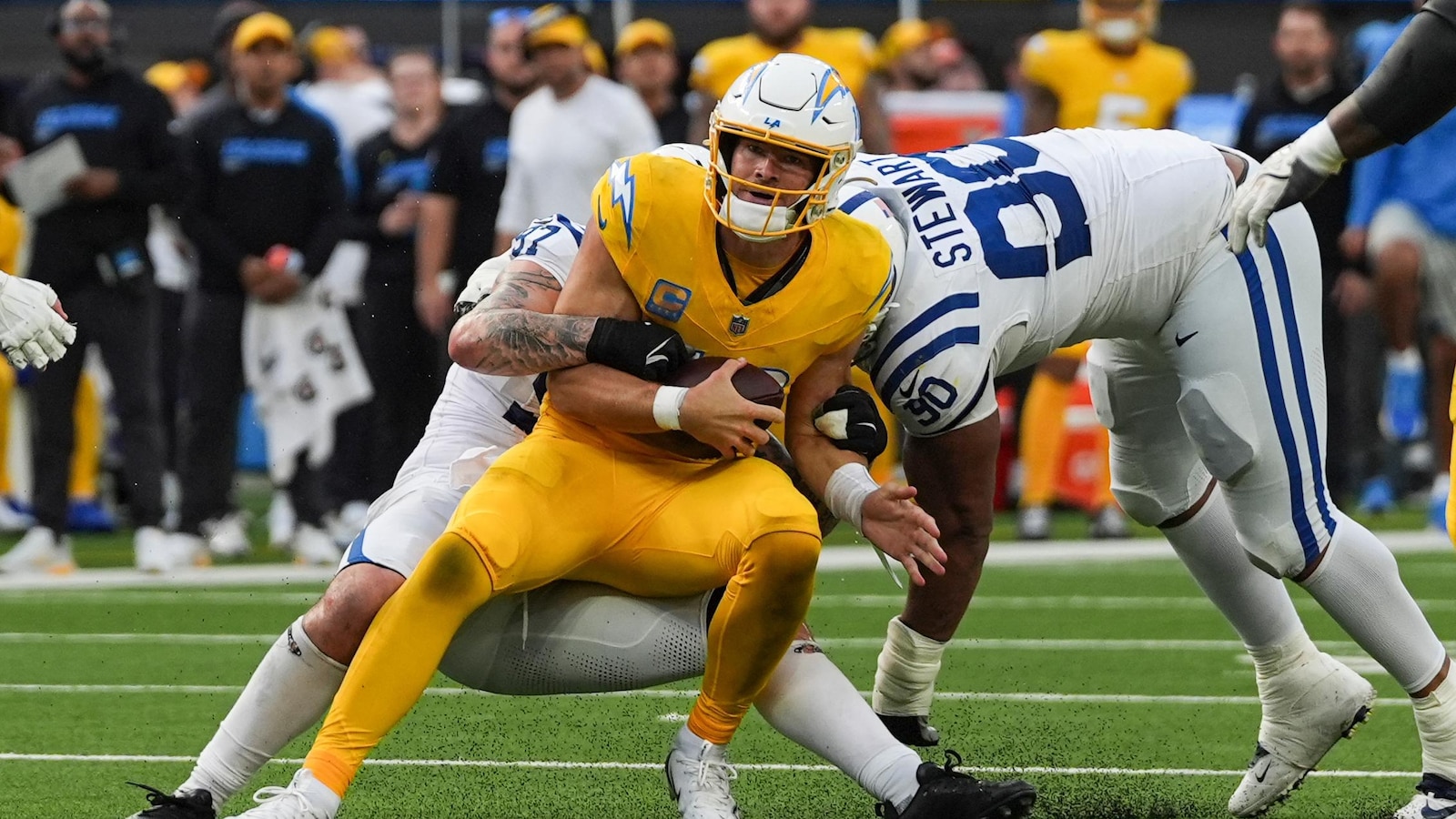 The defense was not completely to blame. Justin Herbert matched a season high with two interceptions, both in the second quarter. He was picked off after the Chargers got to the Colts’ 28-yard line midway through the period and again with just under two minutes to go in the first half after reaching the Indianapolis 8.