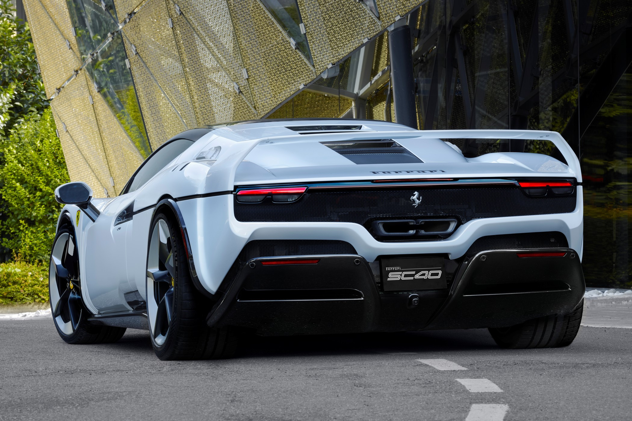 Мощность двигателя V6 — 663 л.с., между ним и 8-ступенчатым «роботом» с двумя сцеплениями установлен единственный тяговый электромотор мощностью 167 л.с., ведущие колёса — задние. Ёмкость тяговой батареи — 7,45 кВт·ч. Максимальная совокупная мощность силовой установки — 830 л.с. До 100 км/ч Ferrari SC40 разгоняется за 2,9 с, максимальная скорость — более 330 км/ч.