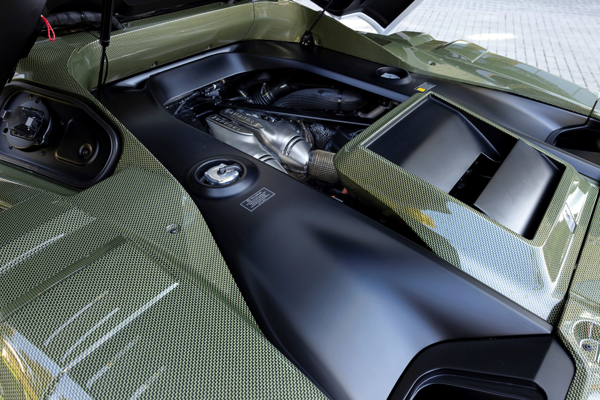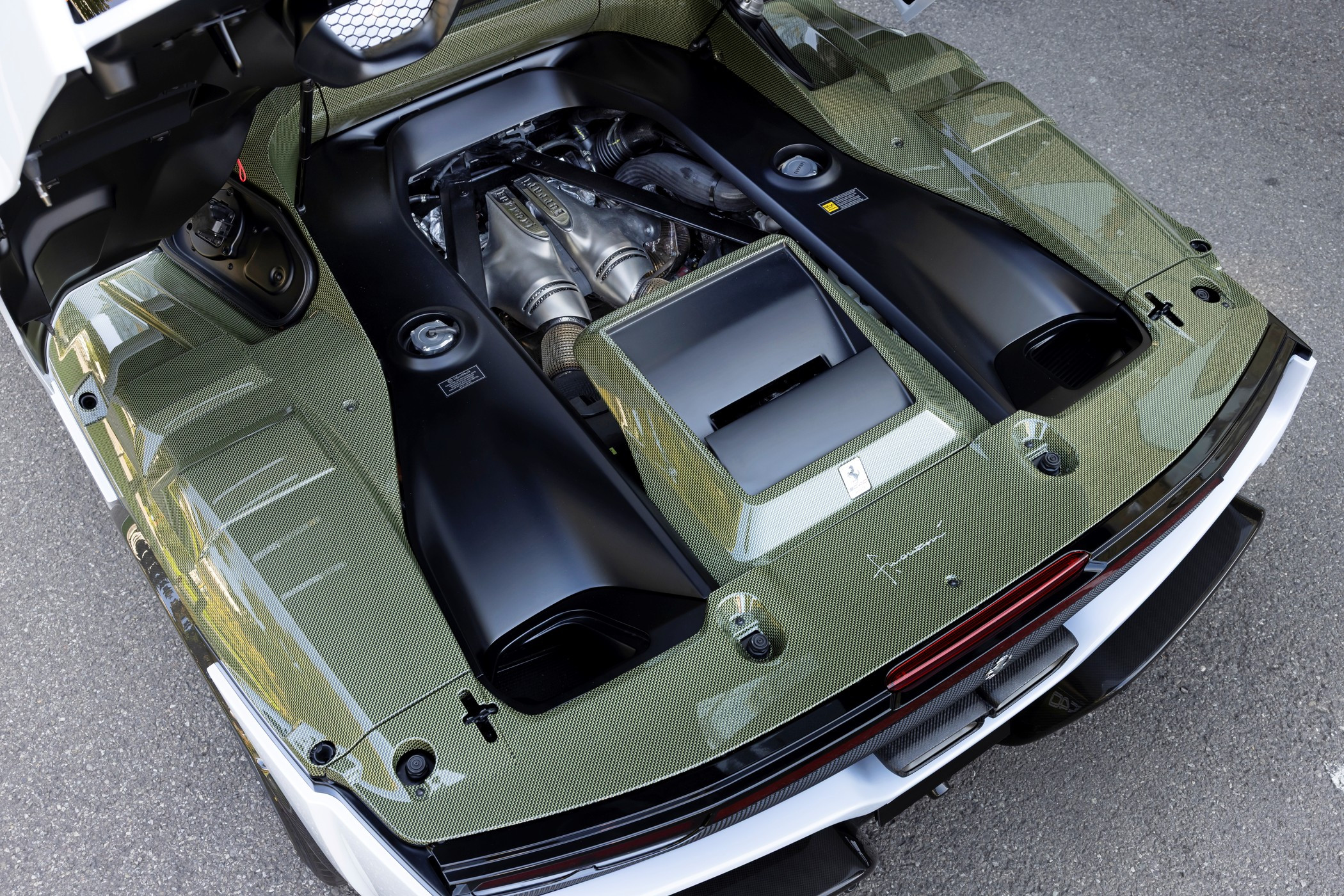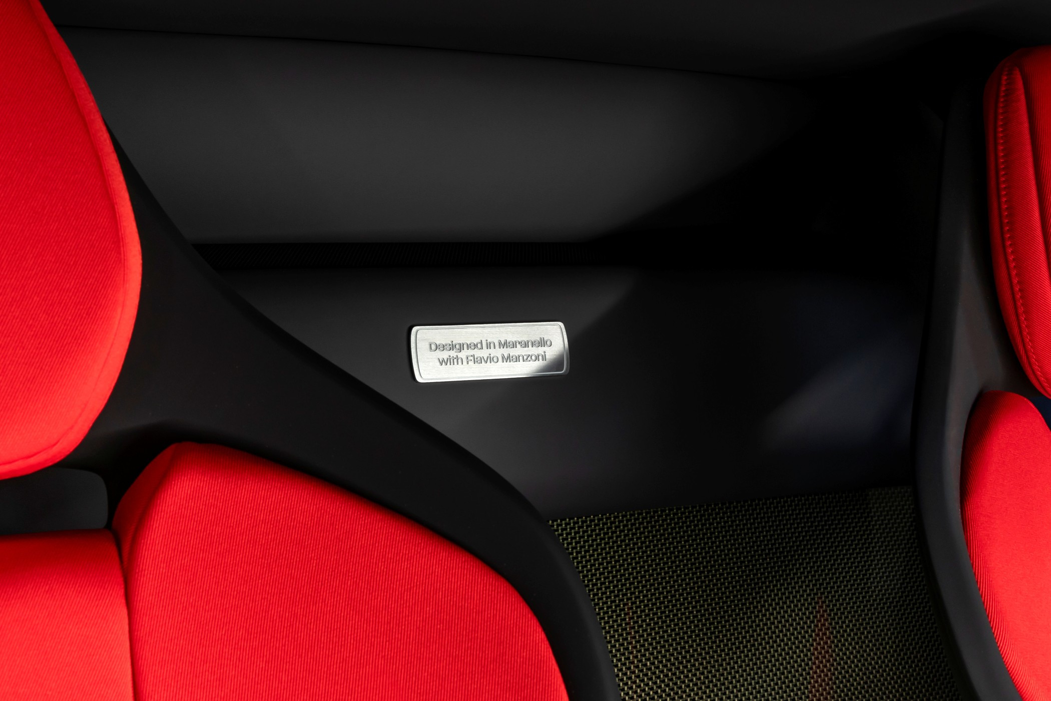Салон у Ferrari SC40 в целом такой же, как у исходного Ferrari 296 GTB, но в отделке широко используется каробн-кевларовый композит с оливковым оттенком. Этим же материалом отделан периметр моторного отсека и рамка центрального воздуховода. Гибридная силовая установка стандартная, но для 3,0-литрового бензинового битурбомотора V6 на 3D-принтере изготовлен уникальный выпускной коллектор в двумя патрубками из карбона и титана.