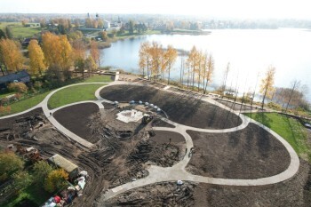 Сейчас подрядчики завершают устройство покрытий из щебня и деревянных настилов, кладку брусчатой плитки, установку уличного освещения и камер наблюдения, а также занимаются озеленением участка.