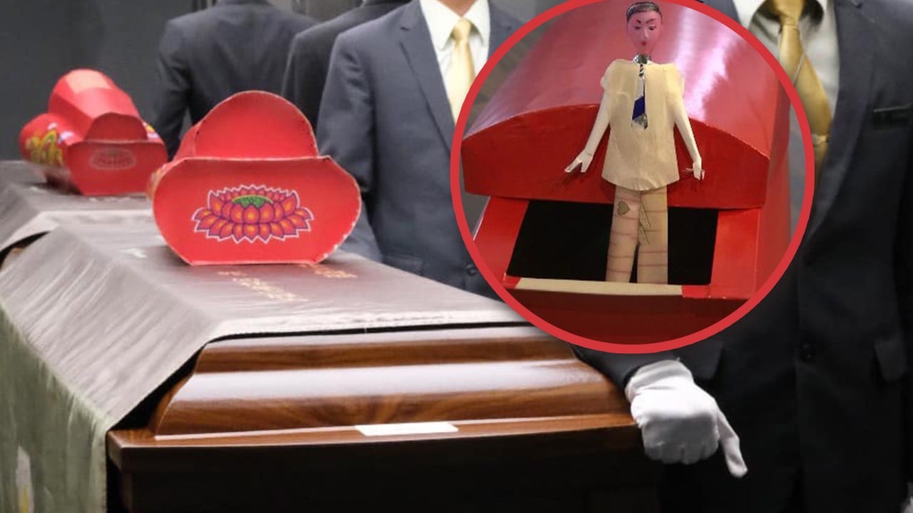 During the ritual, a Taoist priest prepares a small straw figure to represent the potential “third deceased” and places it inside a paper coffin to be burned.