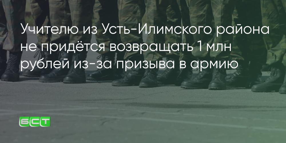 Усть-Илимский городской суд признал незаконным требование Министерства образования Иркутской области о возврате выплаты в 1 млн рублей молодому учителю. Педагога сельской школы внезапно призвали в Вооружённые силы, но почти сразу дали отсрочку. Однако договор он успел расторгнуть. Об этом сообщает ИА «БСТ» со ссылкой на объединённую пресс-службу судов общей юрисдикции Иркутской области.