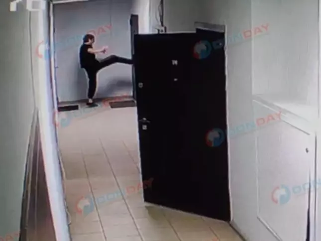 Жильцы дома записали видео, на котором видно, как сосед с силой ломится в чужую дверь. В этот момент в квартире находилась женщина с пятилетним ребёнком.