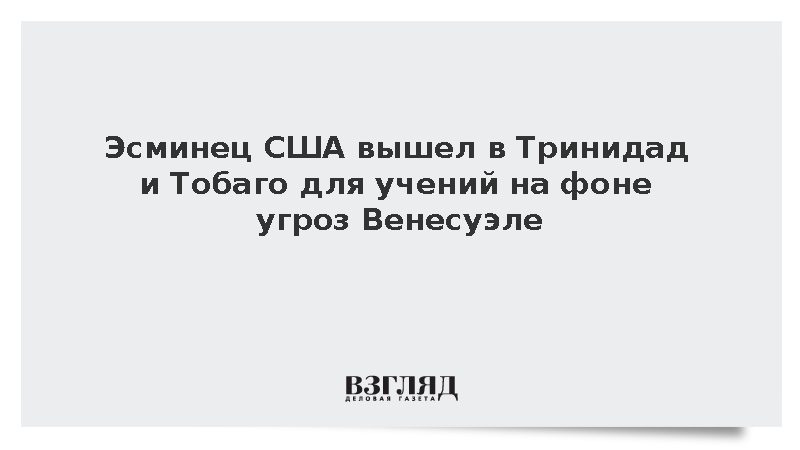Прибытие эсминца Gravely в Порт-оф-Спейн и проведение совместных учений с силами обороны Тринидада и Тобаго запланировано с 26 по 30 октября, передает РИА «Новости». В этот период 22-й экспедиционный отряд морской пехоты США проведет тренировочные мероприятия вместе с местными военными. Маневры проходят на фоне усилившегося напряжения в регионе из-за шагов США по отношению к Венесуэле.