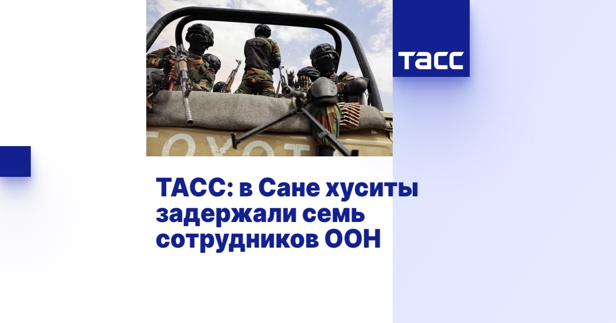 ДУБАЙ, 24 октября. /ТАСС/. Хуситы из повстанческого движения "Ансар Аллах", которое контролирует около трети территории Йемена, задержали не менее семи сотрудников ООН в столице Сане. Об этом ТАСС сообщил местный источник.