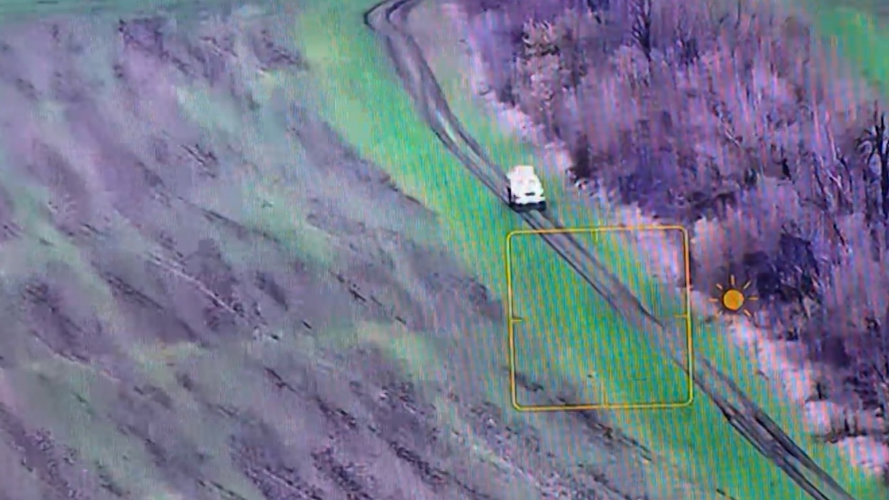 Операторы беспилотников ведут цель, стараются попасть в слабозащищенные места - между дверей, переднюю решетку и в район двигателя.
