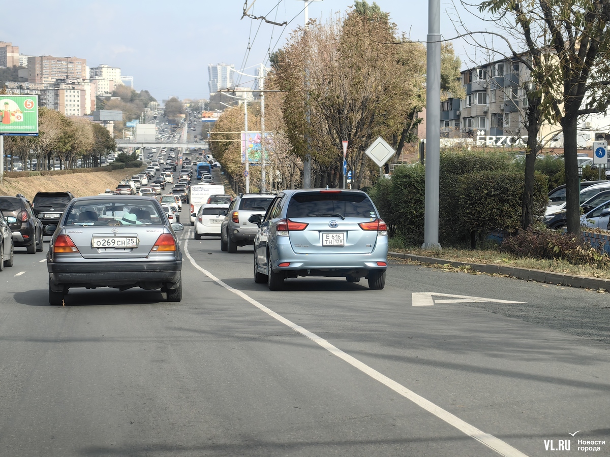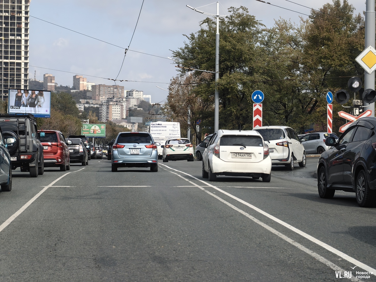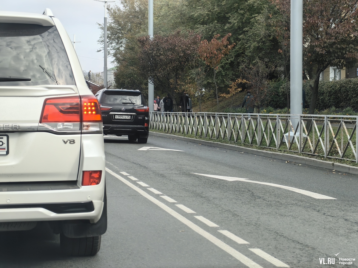 Полоса стала сюрпризом для плотного потока автомобилей. Машины, выезжающие с развязки у стадиона на проспект 100-летия Владивостока, с удивлением обнаруживают перед собой букву «А» и сплошную линию разметки там, где ещё вчера спокойно перестраивались в соседний ряд.