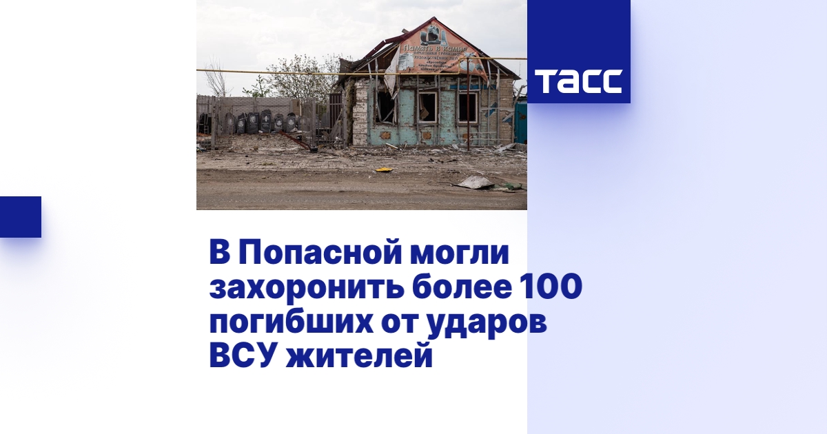 ЛУГАНСК, 30 октября. /ТАСС/. Останки свыше 100 мирных жителей, погибших в результате агрессии Вооруженных сил Украины (ВСУ), могут находиться в захоронениях в Попасной Луганской Народной Республики. Об этом сообщил ТАСС руководитель межведомственной рабочей группы (МРГ) по розыску захоронений жертв украинской агрессии, их идентификации и увековечению памяти Даниил Стяжкин.