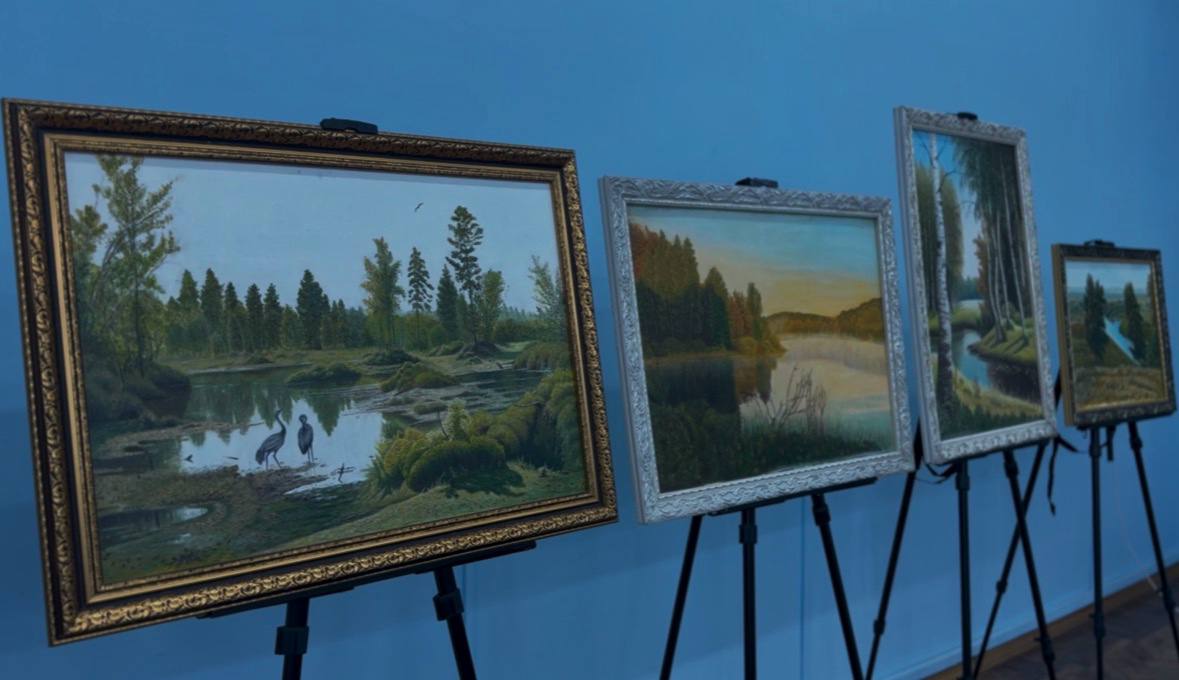 В областной научной библиотеке имени Асеева представили работы художницы из Суджанского района Ольги Ефременко. Эти картины удалось вывезти из Суджи в октябре 2025 года. На некоторых полотнах сохранились следы разрушений.