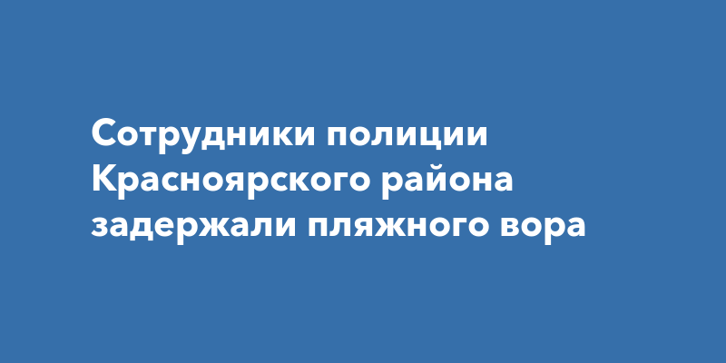 В дежурную часть О МВД России по Красноярскому району обратился 71-летний местный житель, который сообщил полицейским о том, что во время отдыха на пляже реки Сок, у него пропали вещи: музыкальная колонка, надувная лодка и портативное зарядное устройство, общей стоимостью 30 тысяч рублей.