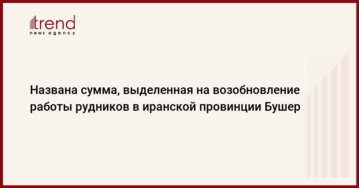 БАКУ/Trend/ - В прошедшем иранском году (с 20 марта 2024 года по 20 марта 2025 года) на возобновление работы 12 рудников в южноиранской провинции Бушер был потрачен 1 триллион риалов (около 1,74 миллиона долларов США).