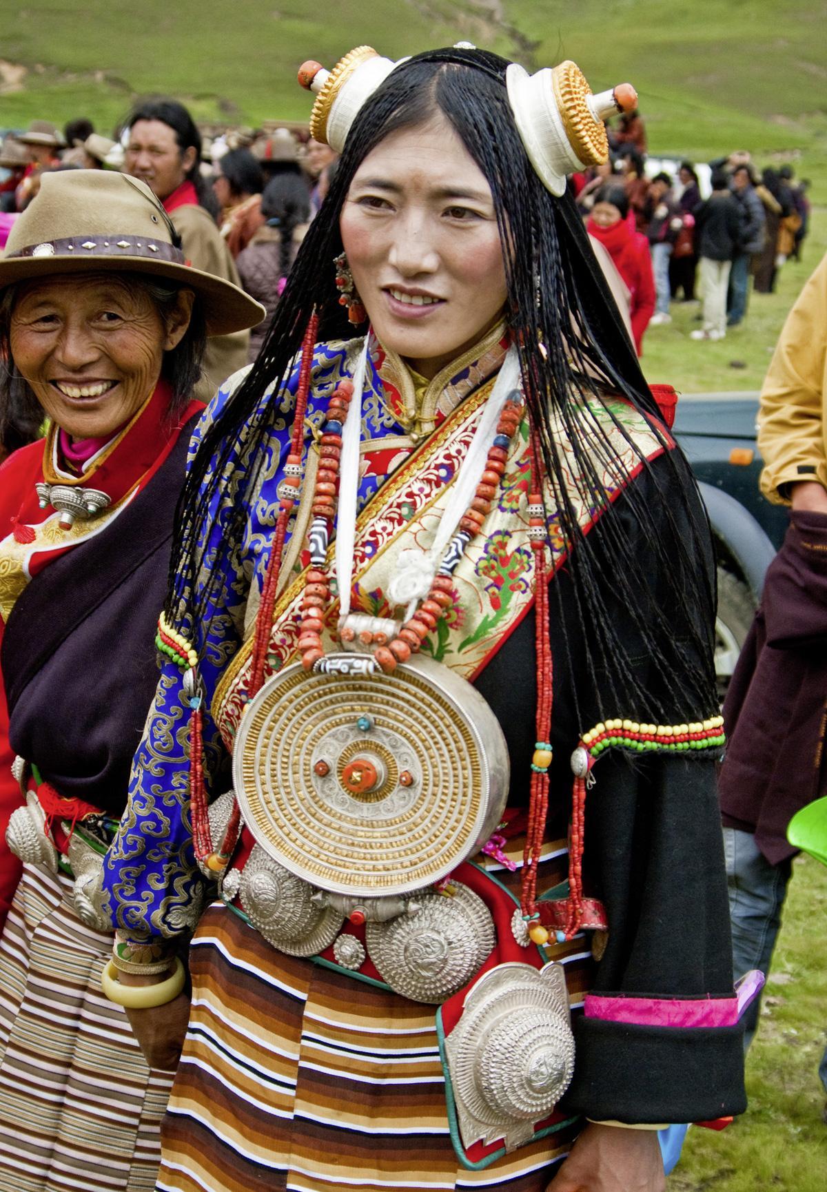 На сельскохозяйственной выставке в городе Синин, столице провинции Цинхай, у меня разбегаются глаза: многие посетители одеты в традиционные костюмы. Я заговариваю с девушкой, наряд которой дополняют прекрасные старинные серьги и колье.