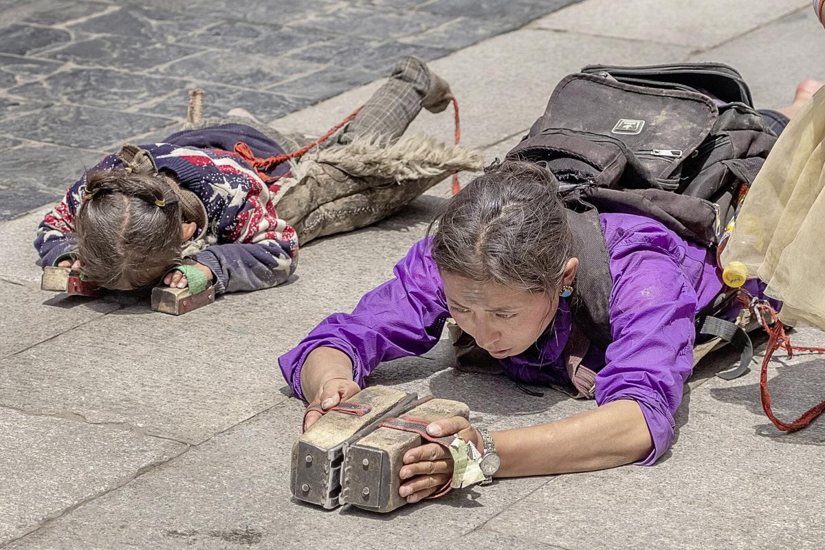 По дороге из Чэнду я наблюдала, как женщины совершают кору: обходят священные места по часовой стрелке, простираясь по земле в поклоне на каждом шагу, ради духовного очищения, накопления заслуг, единения со Вселенной.