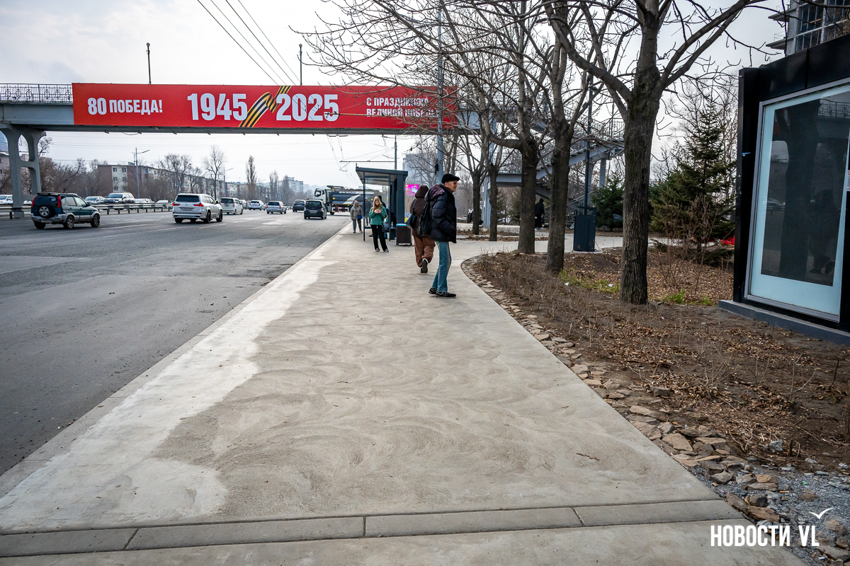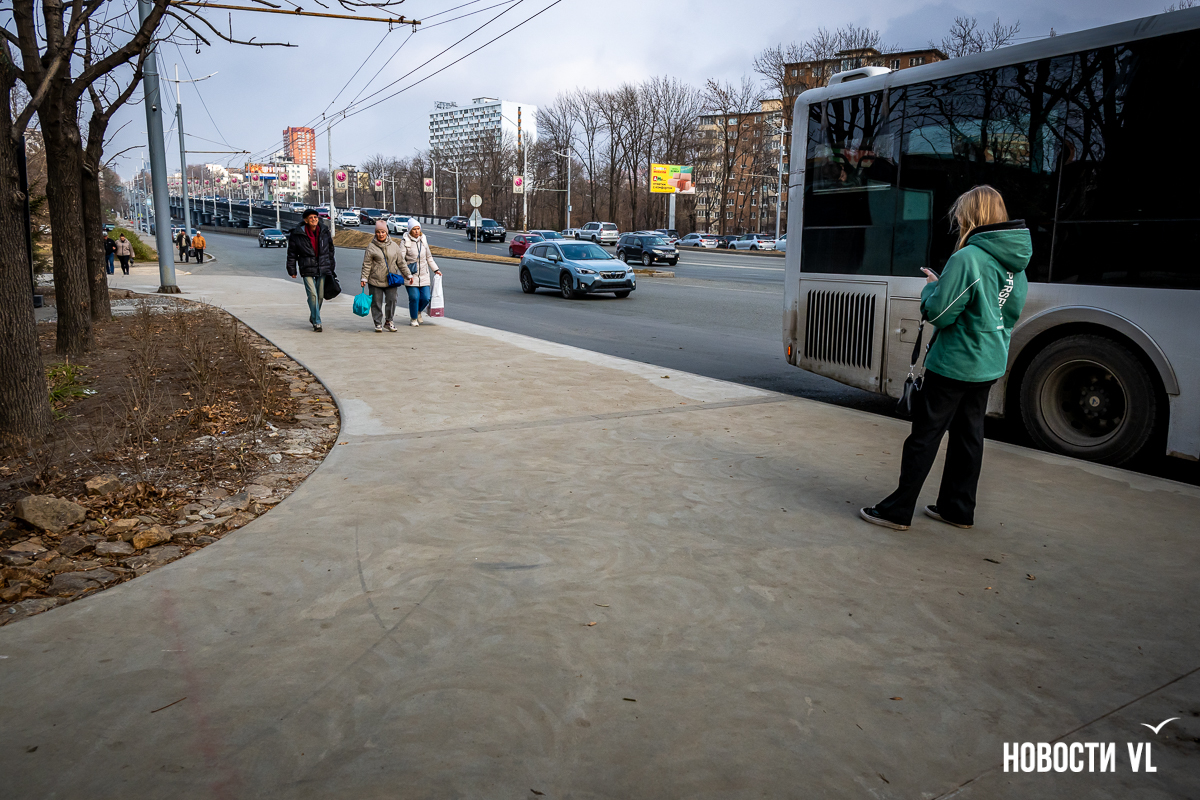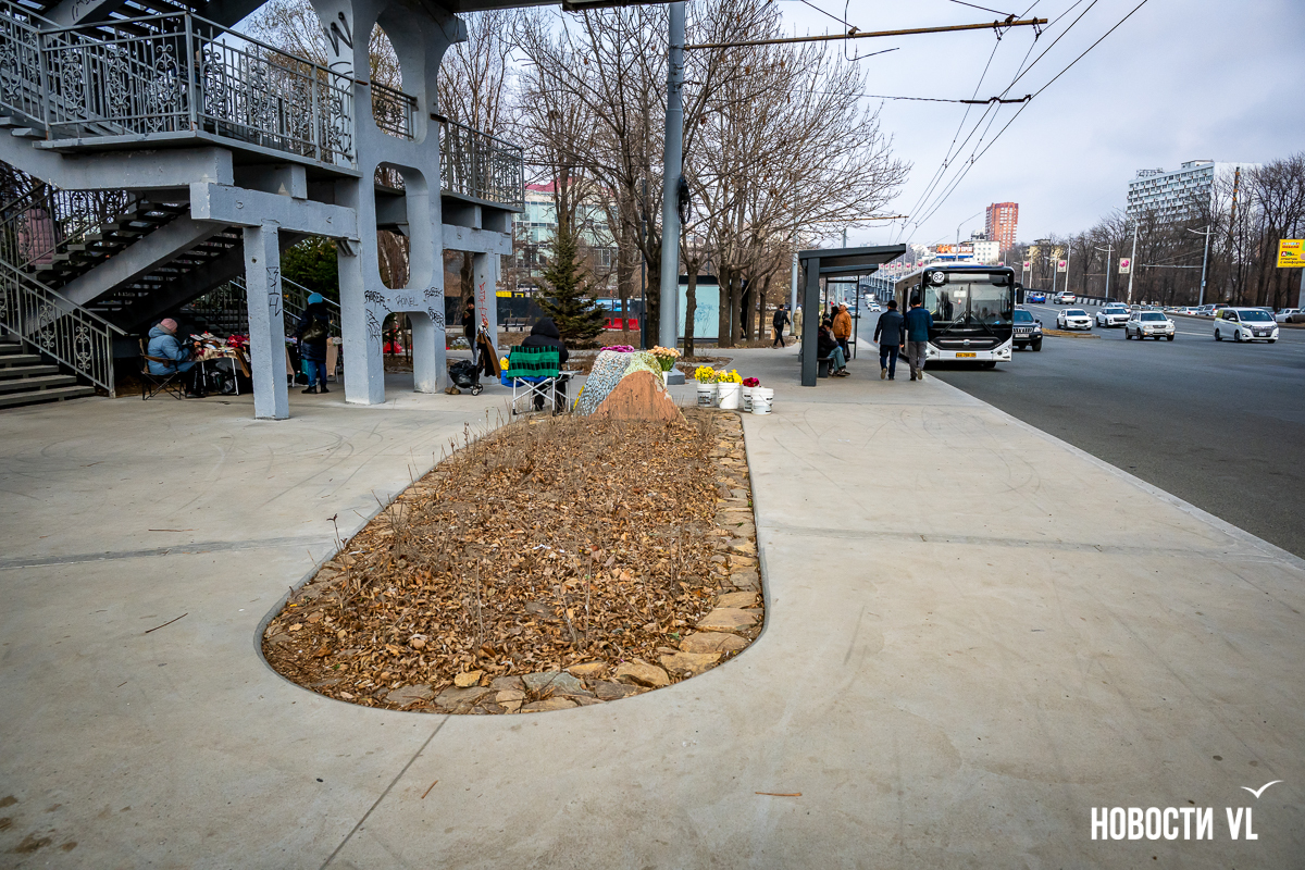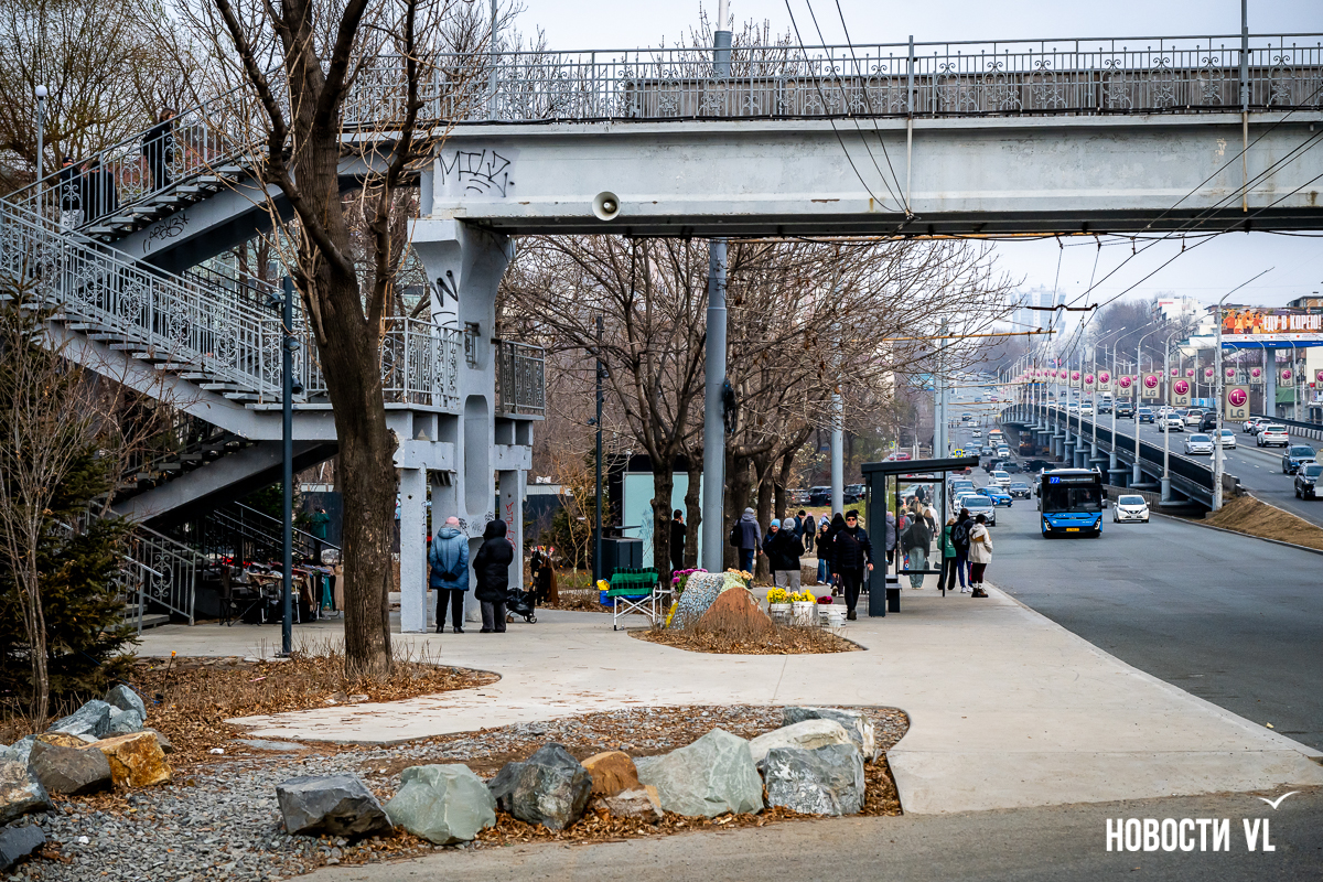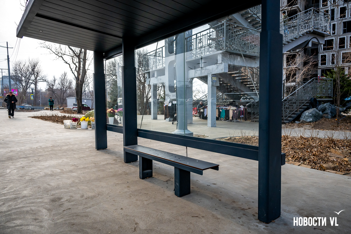 В начале ноября около автобусной остановки «Парк Победы» рабочие убрали строительный забор вдоль пешеходной зоны возле виадука. Здесь по заказу застройщика соседнего ЖК обустроили новый сквер со скамейками и урнами, высадили новые деревья и кустарники, расширили тротуар в зоне ожидания пассажиров и установили два новых остановочных павильона. Для отвода воды с благоустроенной территории придумали необычную систему сухих ручьёв. В будущем от сквера можно будет пройти по набережной Второй речки к новым жилым домам, эта территория будет общедоступной.