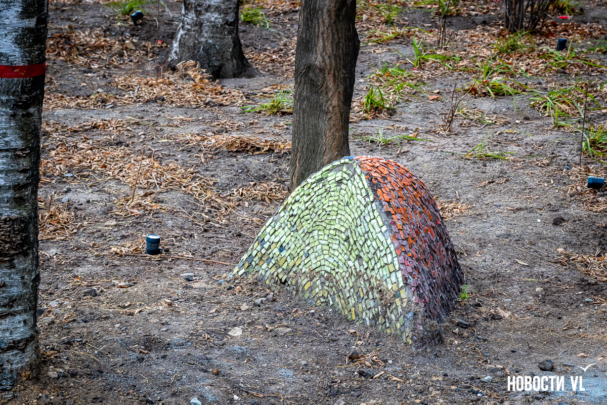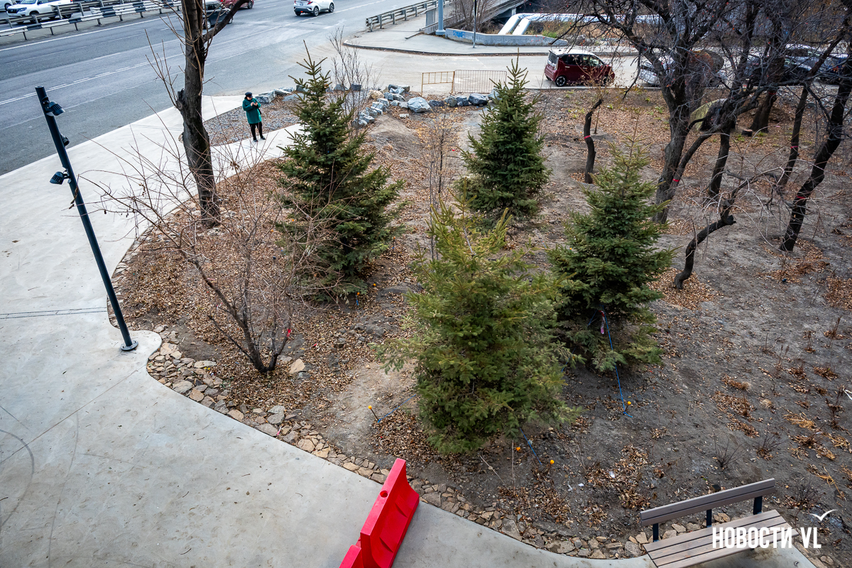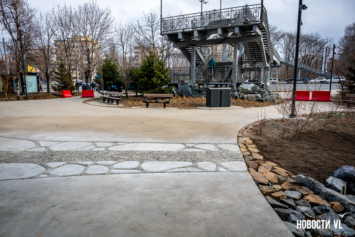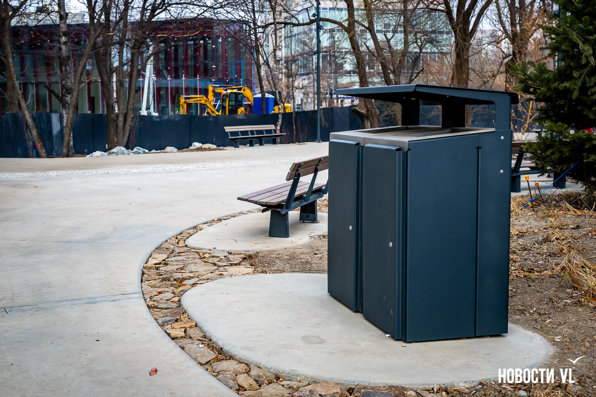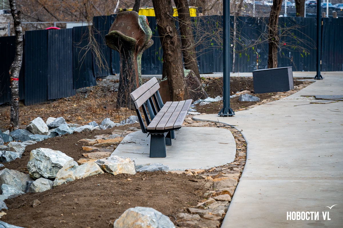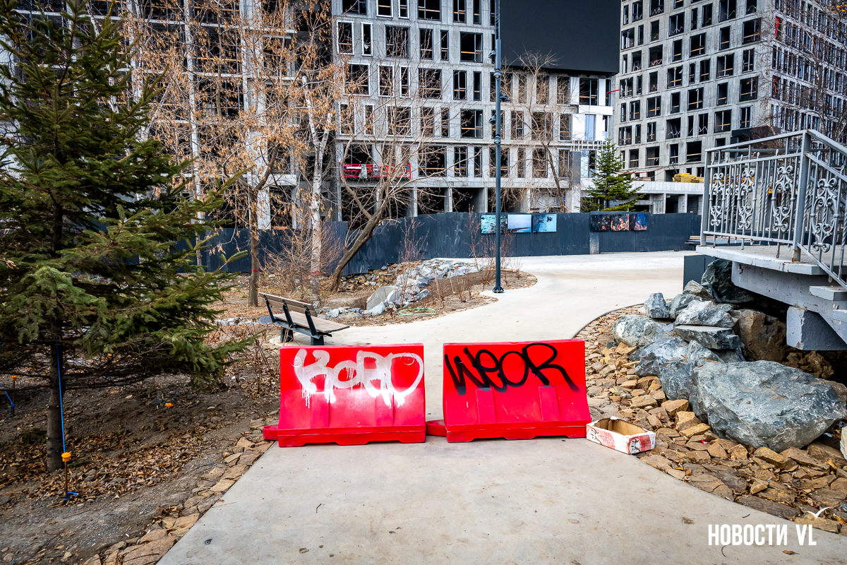 Напомним, сквер между строящимся ЖК Stark и остановкой «Парк Победы» строили с конца мая. Работы велись на территории, которая относится к участку застройщика 25:28:050045:1044 (2,3 га) и неразграниченному городскому участку сразу за ним.