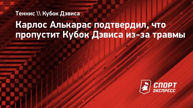 Испанец Карлос Алькарас подтвердил, что получил травму и не сыграет за сборную в Кубке Дэвиса.
