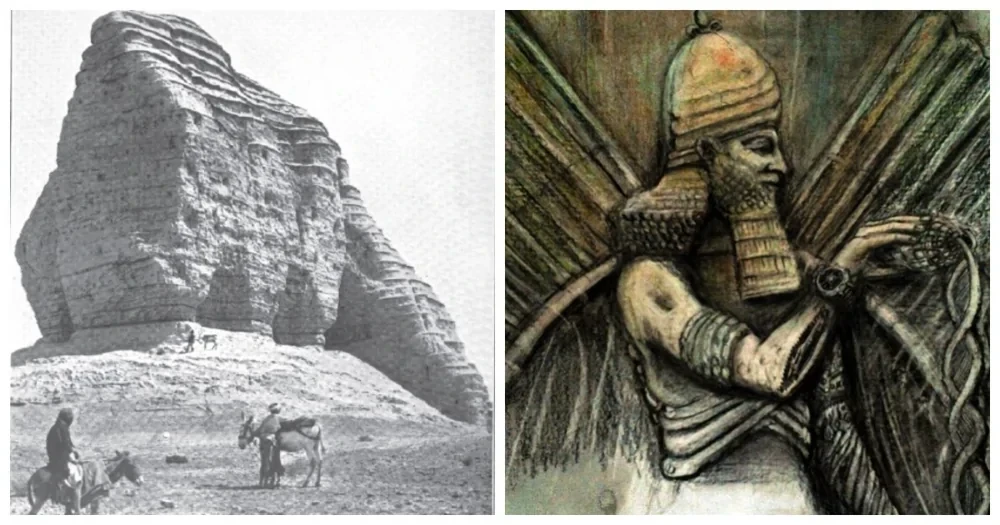 В эпоху расцвета город занимал около 225 гектаров за мощными стенами. Его вытянутая форма, разбитая на несколько террас и холмов, могла отражать строгое зонирование. Главной доминантой был зиккурат, посвящённый Энлилю — верховному богу шумерского пантеона, властителю ветра и бурь. В течение веков путники — от караванщиков до автомобилистов — ориентировались по его силуэту на пути в Багдад. Местные жители называли его Холмом Нимрода, что порождало легенды о Вавилонской башне и путаницу среди европейских путешественников.