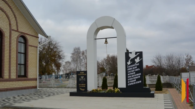 На территории рядом с новой часовней и кладбищем установили мемориал защитникам Отечества. Памятник выполнен в виде арки с колоколом. По бокам установили стелы, на которые нанесли слова в честь погибших воинов и силуэты улетающих журавлей.