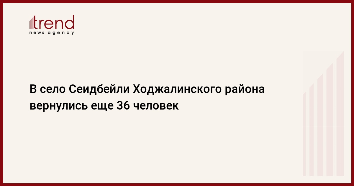 Как сообщили Trend в отделе по связям с общественностью Службы восстановления, строительства и управления в городе Ханкенди, Агдеринском и Ходжалинском районах, на данном этапе в село Сеидбейли переселены 11 семей из 36 человек.