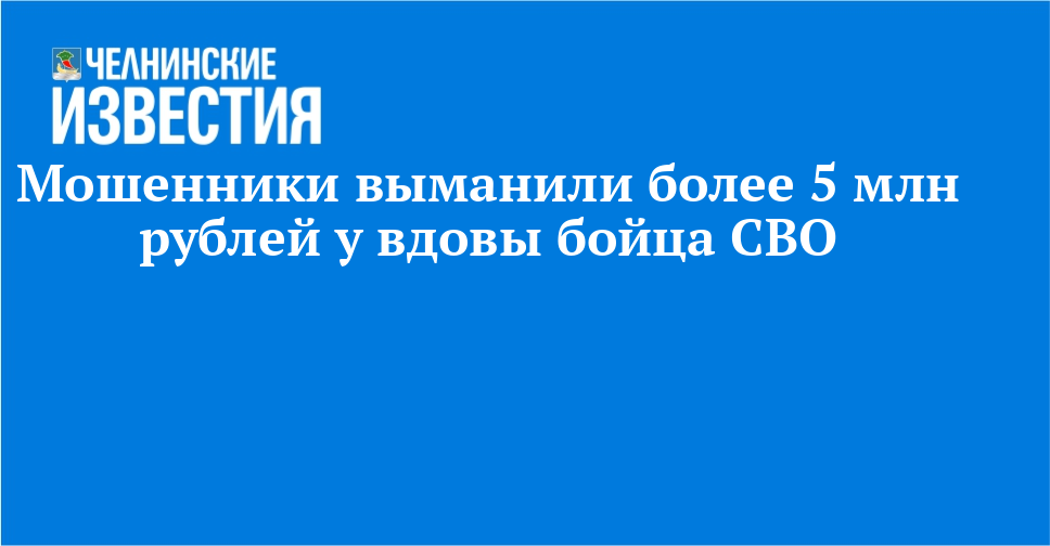 Получив выплату от государства после гибели мужа - участника СВО, вдова, проживающая в Агрызском районе Татарстана, решила инвестировать средства и получить дополнительный доход. В июне этого года она поддалась на уговоры мошенников и перечислила им свыше 5 млн рублей. Было возбуждено уголовное дело по статье 159 УК РФ «Мошенничество».