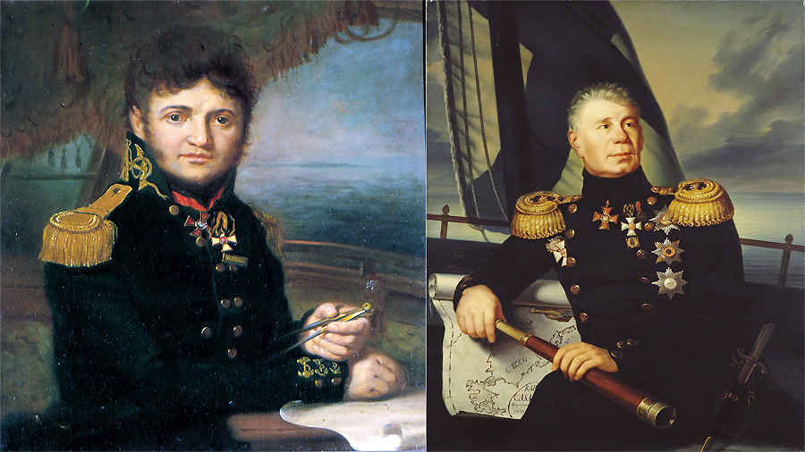 Владимир Боровиковский. «Портрет Юрия Федоровича Лисянского». 1810. Портрет Ивана Федоровича Крузенштерна. 1836. Фото: wikipedia.org