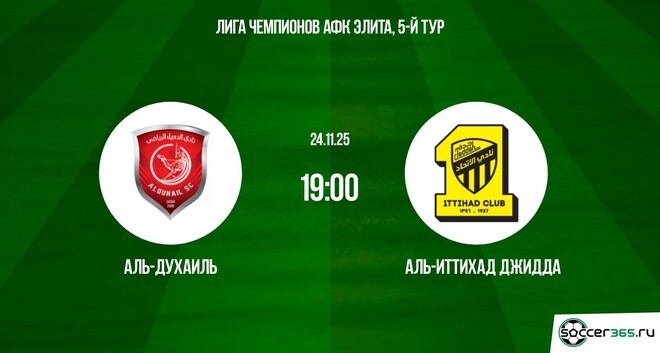 В пятом туре общего этапа Лиги чемпионов АФК регулярно набирающий очки дома "Аль-Духайль" ждёт в гости только начавший стабилизироваться "Аль-Иттихад".