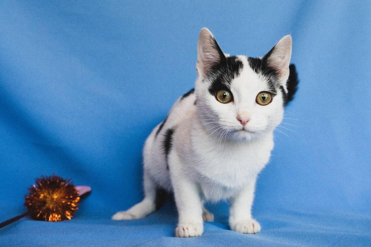 По словам волонтёров, котёнок активный, смышленый и игривый. Он имеет очень необычный окрас — белый в чёрный «горошек». Найдёнышу примерно 4,5 месяца. Кот обработан от паразитов, приучен к лотку и дважды привит от всех вирусов.