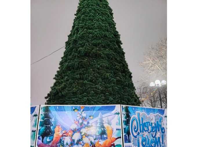 Сборная конструкция установлена на центральной площади перед Районным Дворцом культуры. Пока ель стоит без традиционного украшения, но ее появление уже создает атмосферу ожидания праздника.