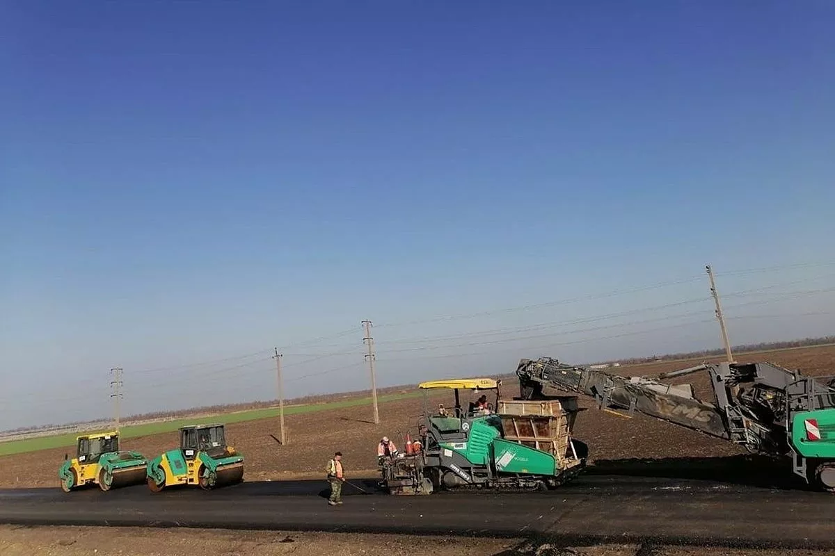 Продолжаются ремонтные работы участка дороги между станицами Калининской и Новониколаевской. Протяженность его составляет 4,3 километра.
