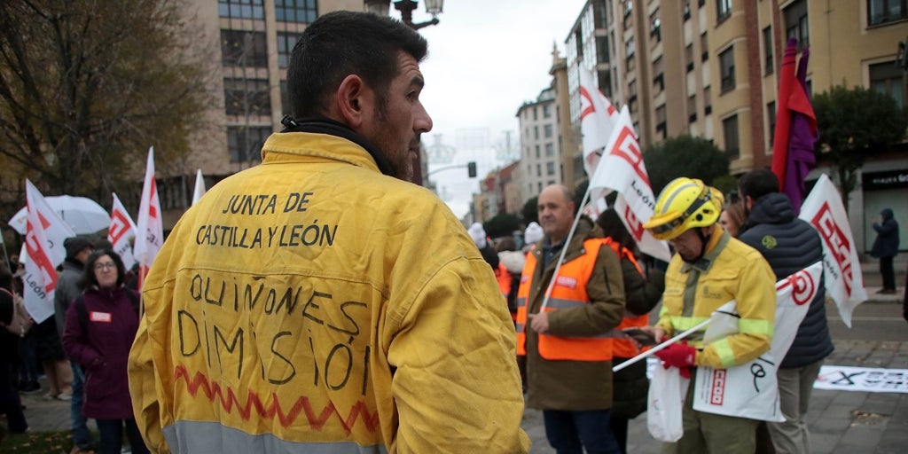 El presidente de la Junta, Alfonso Fernández Mañueco, y el consejero de Medio Ambiente, Vivienda y Ordenación del Territorio, Juan Carlos Suárez-Quiñones, han sido coreados con peticiones de dimisión por los manifestantes, que también han entonado frases como 'Menos toreros y más bomberos', 'Ecocidio por omisión', 'Los incendios se apagan en invierno' o 'El Bierzo se quema y Quiñones lo celebra'.