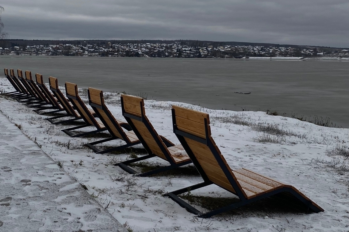 В городе Лысьва Пермского края реализация проекта по благоустройству набережной вызвала неоднозначную реакцию жителей. В ноябре на береговой линии были установлены пляжные шезлонги, которые вскоре покрылись снежным покровом.