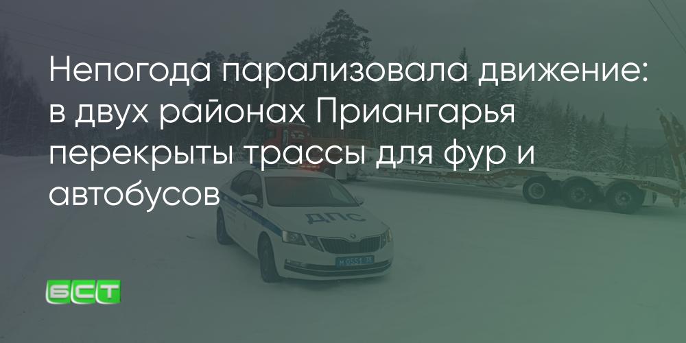 Похожая ситуация и в Тайшетском районе: там из-за заморозков и гололедицы перекрыт участок федеральной трассы Р-255 «Сибирь» (с 1166-го по 1265-й километр). Запрет также касается большегрузного и общественного транспорта.