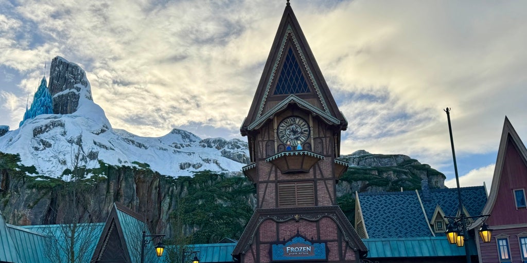 Caminando por Adventure Way, una coqueta avenida que comienza tras las puertas del World Premiere Plaza, uno puede divisar a lo lejos la imponente Montaña del norte que, con sus 36 metros de altura y 400 toneladas, está coronada por el Palacio de Hielo de Elsa. A sus pies, la Torre del Reloj hace de entrada a la nueva atracción de Frozen Ever After, un viaje en barco que sumerge a los visitantes en una gran aventura en la que les acompañan Elsa, Anna y sus amigos. De fondo para amenizar el paseo se podrá escuchar algunas de las canciones más míticas de las películas como 'Let it go!' o 'Do you want to build a snowman?'